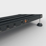 Tämä ratkaisu poistaa tarpeen kuljettaa virtalähdettä erillään pedaalilaudasta ja tarjoaa kompaktin, kestävän ja ammattimaisen kokonaisuuden kahdeksalle efektipedaalille.