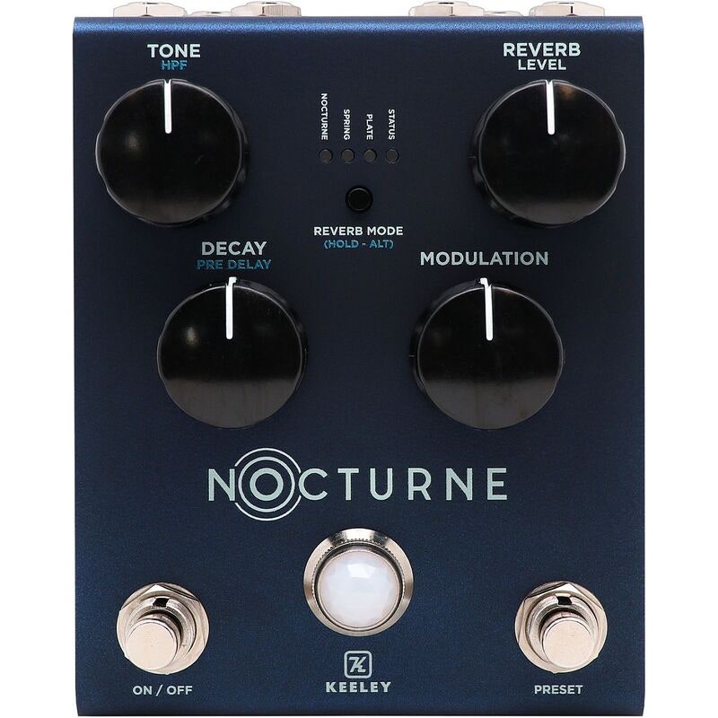 NOCTURNE sisältää kolme huolellisesti viritettyä reverb-algoritmia. Nocturne-tila perustuu Andy Timmonsin Halo-delay-algoritmiin, joka on muokattu eteeriseksi ja syväksi kaiuksi. Spring-tila mallintaa klassisia jousikaikuja ja vintage-putkivahvistimien reverbejä. Plate-tila pohjautuu legendaariseen stereo-putkilevykaikuun, jota on käytetty Austin City Limits -studiolla 1970-luvulta lähtien. Keeleyn palkittu DSP-alusta takaa luonnollisen ja responsiivisen soittotuntuman.
