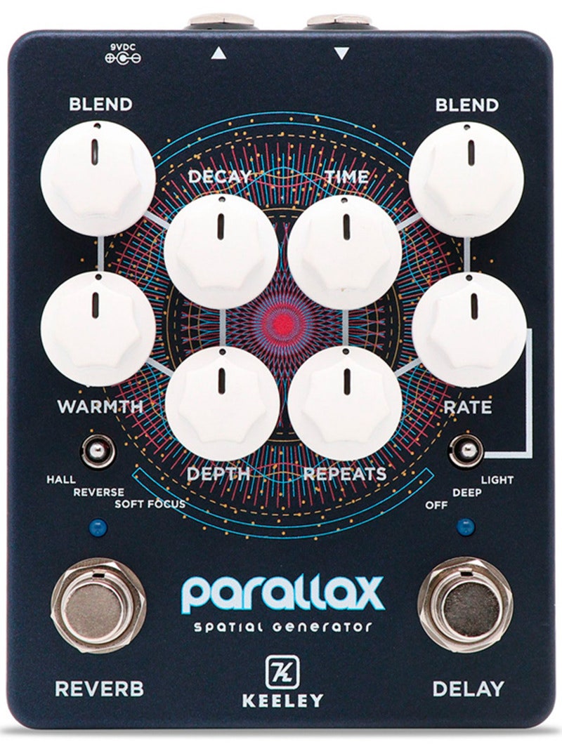 Keeley Parallax yhdistää legendaarisen Caverns-delayn ja Realizerin uniikit shoegaze-henkiset reverb-efektit yhteen pedaaliin. Tulos on täydellinen työkalu ambient-, shoegaze- ja kokeellisen kitarasoundin luojille. Toisella puolella lämmin, analogityylinen modulaatiodelay ja toisella puolella syvät, tekstuuriset reverb-tilat luovat yhdessä äänimaiseman, joka toimii täydellisenä pedaalilaudan päätöspisteenä.