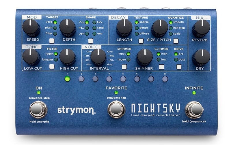 Strymon NightSky on futuristinen reverb-pedaali, joka vie kaiun käsittelyn täysin uusille ulottuvuuksille. Kolmen valittavan reverb-tyylin avulla luot helposti laajoja, elokuvamaisia äänimaisemia tai tiiviitä ambient-tekstuureja. NightSky mahdollistaa äänen taivuttamisen ja muokkaamisen tavalla, joka muistuttaa synteettisiä suodinsveippejä ja harmonisia manipulaatioita – täydellinen valinta kokeileville ja luoville soittajille.