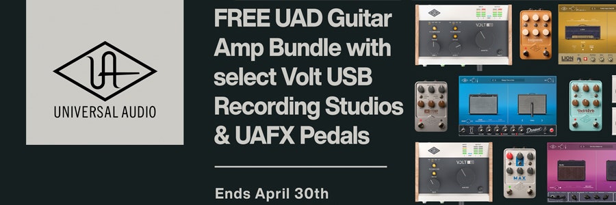 Saat nyt neljä UAD-kitaravahvistin plugaria ilmaiseksi, kun hankit kampanjaan kuuluvan UAFX-pedaalin. Katso kampanjan tiedot täältä!