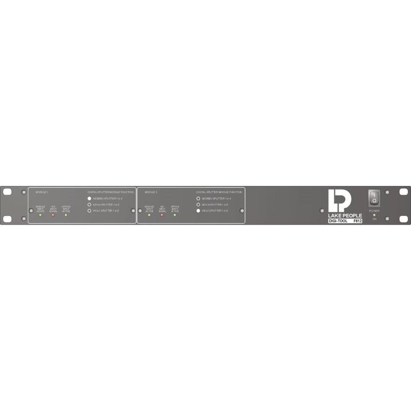 The Lake People DIGI-TOOL F612 is a digital distribution unit designed for professional audio environments where multiple digital signals need to be distributed and synchronized with high accuracy. It handles both AES/EBU and Word Clock formats, enabling flexible signal routing while maintaining signal integrity and low latency.