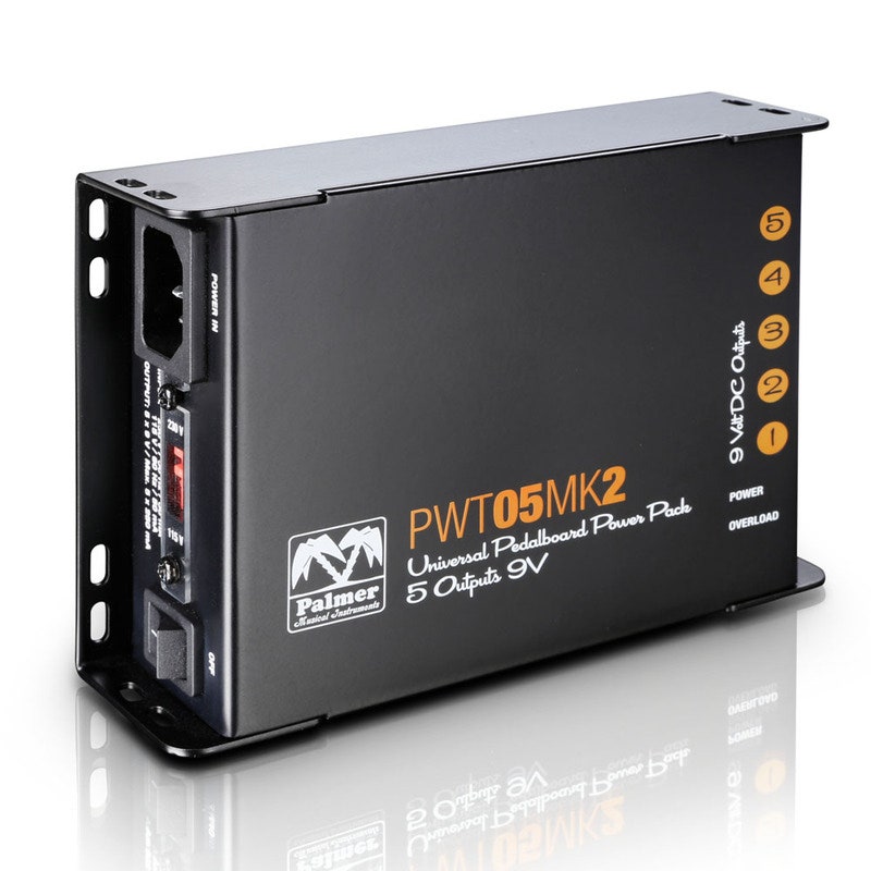 Palmer PWT 05 MK2 on kompakti virtalähde, jossa on viisi keskinegatiivista tynnyriliitintä, jokainen tarjoten vakaan 250 mA virransyötön. Sen eristetyt lähdöt tuottavat puhdasta tasavirtaa pedaaleille ja estävät maalenkit sekä niistä aiheutuvan hurinan, mikä tekee siitä sopivan lähes minkä tahansa pedaalilaudan kokoonpanoon.