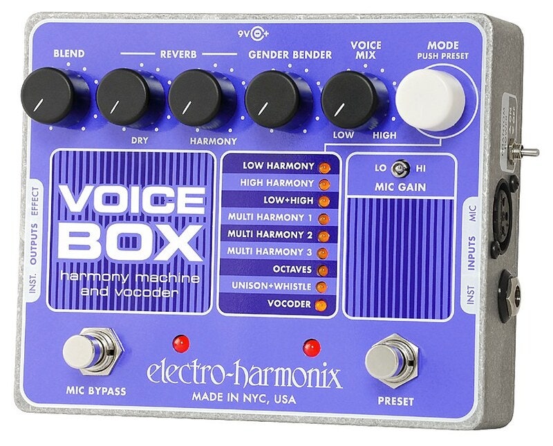 Voice box on harmoniakone ja vocoder samassa paketissa. Se tuottaa tarkat harmoniat ja oktaavit alkuperäisäänen ylä- ja alapuolelle. Voit luoda jopa neljä-äänisiä harmoniamattoja, jotka seuraavat älykkäästi soinnutustasi. Se soveltuu lauluun, kitaralle ja muille instrumenteille ja siinä on voimakkuuskytkimellä varustettu mikrofonietuaste sekä balansoitu XLR-tulo +48V phantom-syötöllä. Erillisellä reverb-säätimellä saat kaiutettua originaali- ja harmoniasignaalia.
