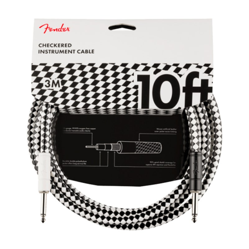 Fender Pro -sarjan 3 metrin instrumenttikaapeli yhdistää näyttävän ruutukuvioidun ulkoasun ja ammattitason rakenteen. Kudottu keinonahkainen kuori, valko-mustat vaihtuvat liitinrungot ja muotoon valetut plugit tarjoavat kestävyyttä ja luotettavuutta sekä lavalla että studiossa.