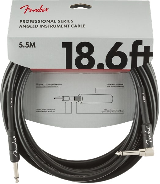 Tuotenumero 1061596Fender Professional Series instrumenttikaapeli, suora/kulma 6.3 mm:n liittimet, pituus 5,5 m. Väri: musta