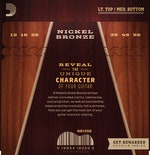 Nickel Bronze -kielet tarjoavat poikkeuksellisen avoimen ja puhtaan sävyn. NY Steel -teräksinen ydin takaa paremman jännitevakauden ja pitkän käyttöiän, kun taas nikkelipinnoitettu fosforipronssi tuo sointiin lämpöä ja kirkkautta ilman ylimääräistä metallisuutta. Tämä tekee niistä täydellisen valinnan fingerstyle-soittajille, bluegrass-muusikoille ja niille, jotka etsivät vivahteikasta akustista ääntä.
