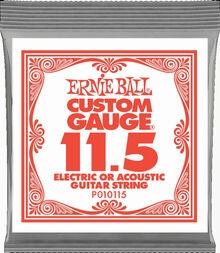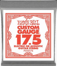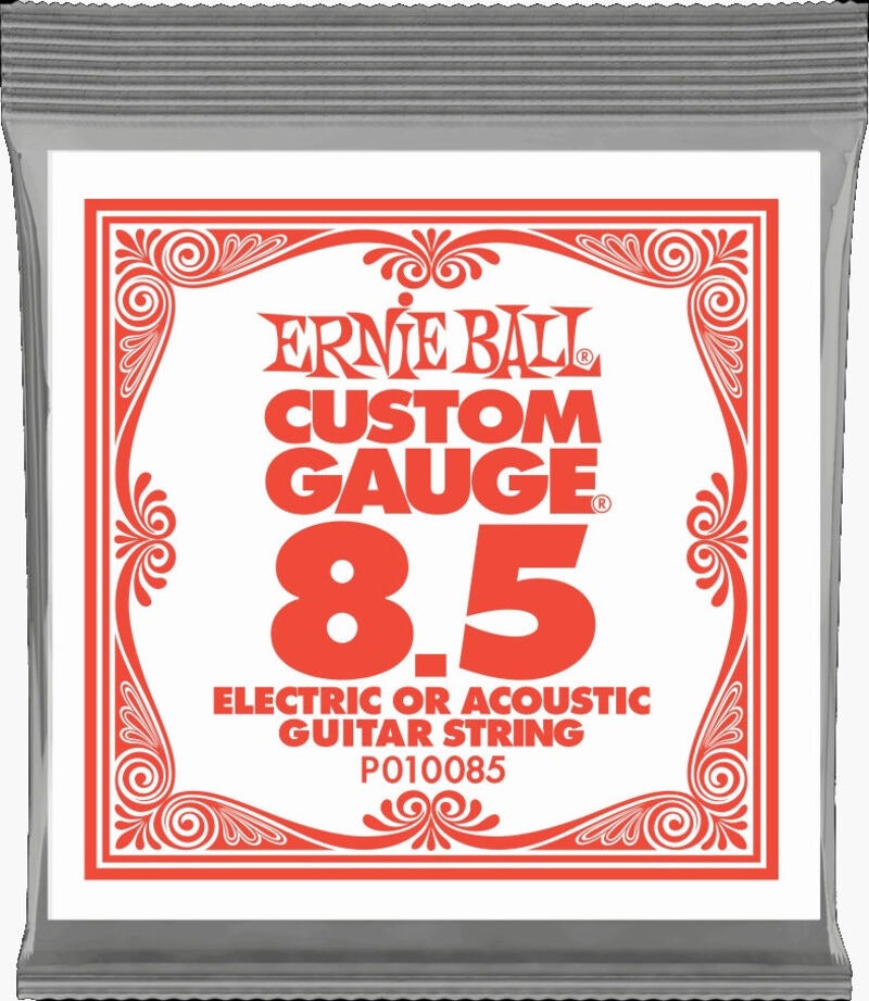 Ernie Ball Plain Steel Electric or Acoustic Guitar Strings are made of specially tempered tin plated high carbon steel used on electric and acoustic guitars. Ernie Ball revolutionized the market by offering Custom-Gauge single string options allowing guitarists to create personalized string sets.