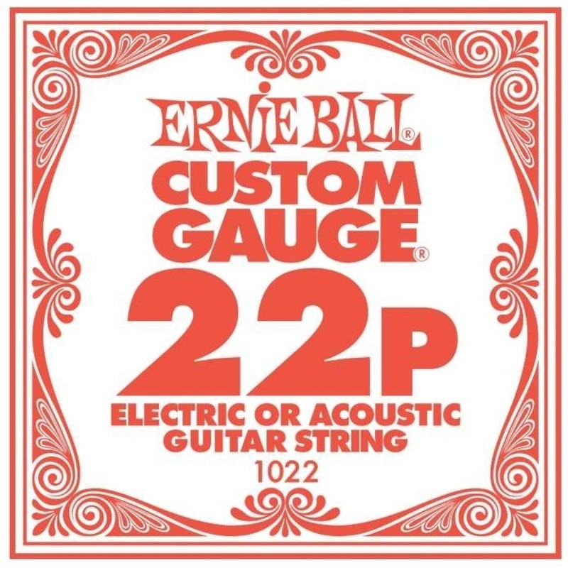 Ernie Ball Plain Steel Electric or Acoustic Guitar Strings are made of specially tempered tin plated high carbon steel used on electric and acoustic guitars. Ernie Ball revolutionized the market by offering Custom-Gauge single string options allowing guitarists to create personalized string sets.