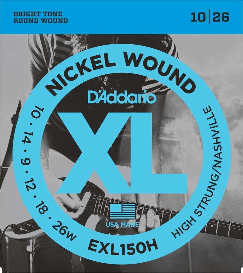 D’Addario EXL150H on High Strung- ja Nashville-virityksiin suunniteltu sähkökitaran kielisarja, joka käyttää 12-kielisen kitaran korkeampia oktaavikieliä luoden säihkyvän, kirkkaan ja ilmavan soinnin. Tämä setti on suosittu studio- ja äänityskäytössä, kun halutaan saavuttaa 12-kielisen kaltainen sointi tuplauksissa ja kerrostetuissa kitararaidoissa. EXL150H kuuluu D’Addarion legendaariseen XL Nickel -sarjaan, joka on ollut muusikoiden luottovalinta vuodesta 1974.