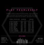 Kielet tuottavat tasapainoisen, artikuloidun soundin ja reagoivat tarkasti nopeaan plektratyöskentelyyn ja monimutkaisiin sointuihin. NYXL-sarja on kehitetty kestämään rankkaa soittoa ilman vireen vaihtelua, ja sen laatu vastaa vaativimmankin kitaristin tarpeisiin. Valmistettu D’Addarion New Yorkin tehtaalla tiukimpien standardien mukaisesti.