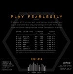 NYXL1059-setin kielet on valmistettu korkealaatuisella NY Steel -teräsytimellä ja nikkelipinnoitetulla teräspunoksella, jotka yhdessä takaavat poikkeuksellisen vetolujuuden ja erinomaisen vireenpitävyyden. Fusion Twist -teknologia lisää kestävyyttä ja ehkäisee katkeilua, mikä tekee tästä setistä täydellisen valinnan aktiiviseen keikka- ja studiotyöhön.