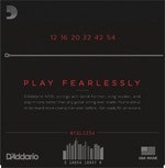 - 12-54 heavy -sarja sisältää tavallisen teräksisen 3./G-kielen, mikä lisää joustavuutta verrattuna perinteisiin 12-vahvuisiin kieliin.
