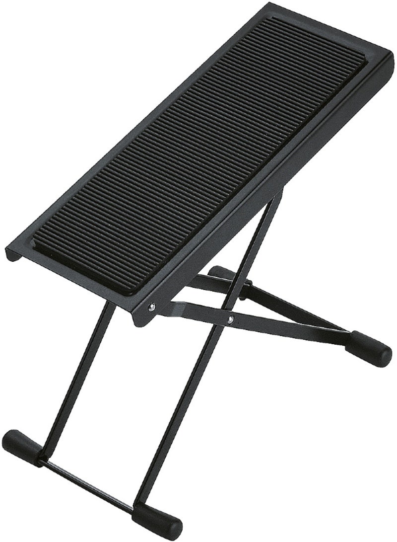 Tukeva kitaristin jalkatuki, joka voidaan säätää kuuteen eri korkeuteen. Suuri liukumaton pinnoite ja kestävät metallijalat tekevät tästä jalkatuesta erittäin vakaan.