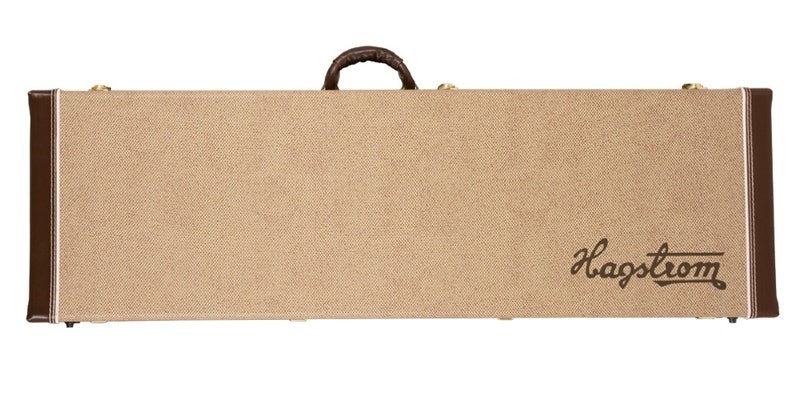 Kotelon pinta on kestävää beigen väristä Tolexia ja kotelon alakulmassa on tyylikäs Hagström-logo. Saumat on vahvistettu paksulla ruskealla tikkauksella ja kotelon sivuilla on hienostuneet keinonahkaiset tikkaukset.