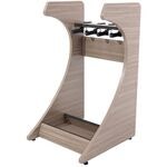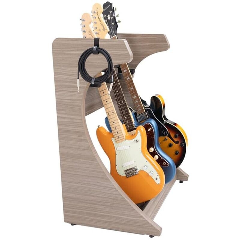 Tuotenumero 10944243–4 guitar rack, driftwood grey plywood, 508x559x914 mm, 12 kg, rubber dividers, padded base, cable hooks, non-slip feet, flat-packed