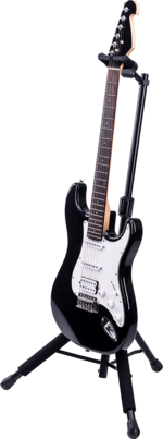 Tuotenumero 1060192Kitarateline automaattisesti lukittuvalla ja taittuvalla Auto Grip-mekanismilla. Tripod-malli, jossa kitaran runko nojaa telineen jalkoihin.