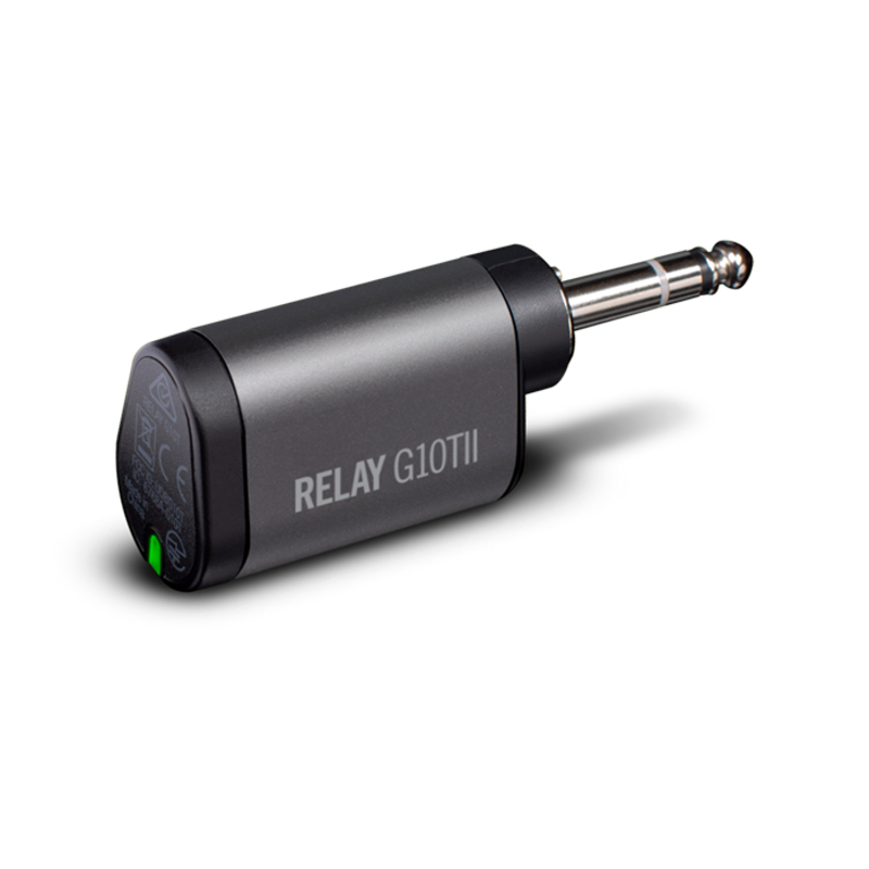The Relay® G10TII wireless transmitter is compatible with the Relay G10 and Relay G10S instrument wireless systems and the POD® Go Wireless amp and effects processor—as well as Line 6® Spider® V 60, 120, 240, and 240HC amplifiers (both original and MkII versions) and Yamaha® THR®-II Wireless amplifiers. Simply plug the G10TII into your instrument, and play—it’s that easy. The G10TII transmitter has a rechargeable internal battery that provides up to seven hours of playing time. To recharge the battery, plug the transmitter into a G10 or G10S guitar wireless receiver or the input of one of the above amps.