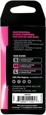 Ernie Ball FretWrap by Gruv Gear on pro-luokan kielidemppari, eli jokaisen studion, sessiomuusikon tai tapping-sankarin vakiovaruste. Vaimentaa tehokkaasti ei-toivotut häiriöäänet ja näin ollen mahdollistaa puhtaan kahden käden täppingin. Säädettävä rakenne haluttuun demppausvoimaan. Medium - Sopii 5-kielisille bassoille, sekä 6-kielisille klassisille kitaroille.