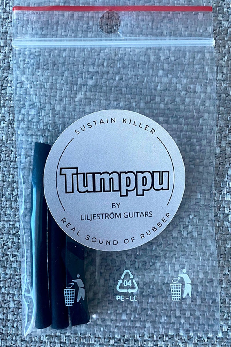 Liljeström Guitars Tumppu on yksinkertainen mutta tehokas tapa muuttaa kitaran luonnetta hetkessä. Tallaluun eteen kielten alle asetettava kumiosa vaimentaa sustainia ja tuo soundiin kuivaa, napakkaa ja perkussiivista rytmiikkaa ilman pysyviä muutoksia soittimeen.