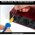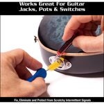 MusicNomad’s JackPot Contact Cleaner with Deoxit® (2mL) is specially made for electronics found on guitars, amps, pedals and other music gear. It removes oxidation, improves conductivity, stops scratchy and intermittent signals and prevents future damage. Use our ergonomic and custom designed Jack & Pot Cleaning Brush with our Cleaner to safely clean inside the jacks and pots. Better than a contact cleaner alone, the brush gets into all the crevices and removes the oxidation safely without soaking the inside of the instrument and music gear. Small in size but big in results with 70 drops of contact cleaner solution in every tube.