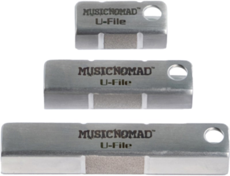 MusicNomadin tiimin suunnittelema innovatiivinen U-viila laskee yksittäiset korkeat nauhat, poistaen tehokkaasti kieli/nauhahälyäänet. Ainutlaatuinen U-muotoinen kanavamuotoilu liukuu kielen alle optimaalista viilan asettelua varten ja käyttää leveää timanttiverhottua viilaa, joka nopeasti ja tehokkaasti laskee ja tasoittaa nauhan korkeuden vastaamaan viereisiä nauhoja.