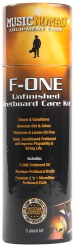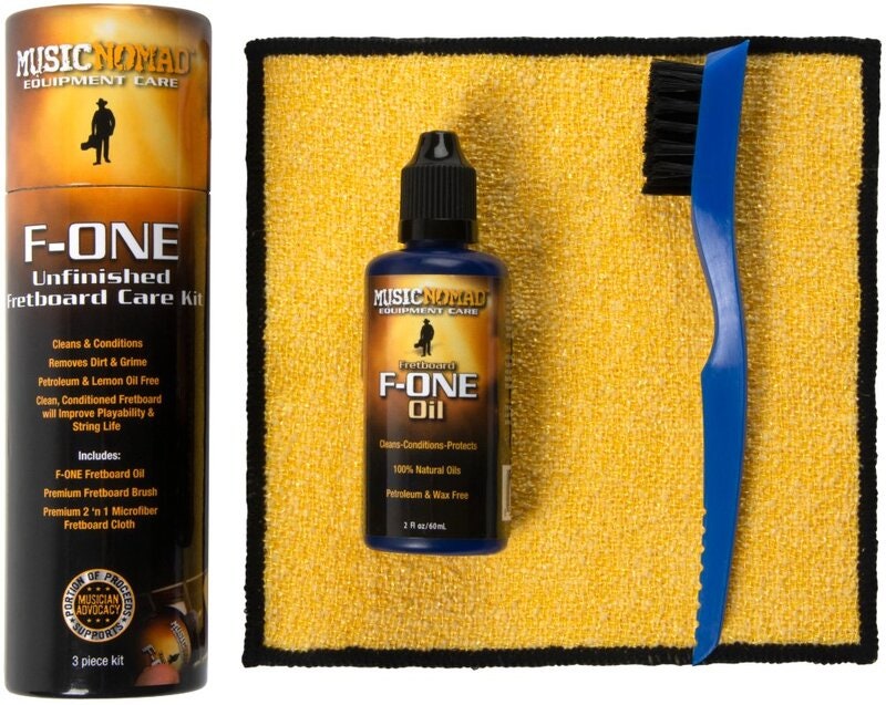 Puhdistettu ja hoidettu otelauta ei ainoastaan paranna soitettavuutta ja kielten kestävyyttä, vaan myös pidentää käsittelemättömän otelaudan puun elinikää estämällä sen kuivumisen ja halkeilun. MusicNomad’in F-ONE Unfinished Fretboard Care Kit sisältää kaiken tarvittavan otelaudan puhdistamiseen ja hoitoon. F-ONE-öljy on valmistettu huolella valikoiduista erittäin puhdistetuista puu- ja siemenöljyistä, jotka puhdistavat, hoitavat ja suojaavat otelautaa. F-ONE ei sisällä sitruunaöljyuutteita, vahoja, petrokemian tisleitä, silikonia tai vettä. Innovatiivinen 2 'n 1 -mikrokuituliinamme on ainutlaatuinen: toinen puoli on pehmeä hellävaraiseen levitykseen ja puhdistukseen F-ONE-öljyn kanssa, kun taas toinen puoli sisältää pieniä hankaavia kuituja, jotka tunkeutuvat otelaudan syihin ja poistavat lian ja rasvakertymät. Erityisesti suunniteltu otelautaharjamme on täydellinen työkalu tarkkaan puhdistukseen ja hoitoon nauhojen ympärillä sekä syvemmissä puunsyissä. "V-leikatulla" harjassuunnittelulla ja lisänä muovisella kaapimella varustettuna olet täysin valmis antamaan otelaudallesi täydellisen spa-hoidon. Tämä on MusicNomad-laatua – uusi standardi soitinten huollossa.