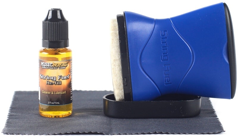 MusicNomadin Premium Three-Piece String Care Kit sisältää kolme suosittua tuotettamme, jotka sopivat kaikille kielityypeille kitarassa, bassossa, banjossa, ukulelessa, mandoliinissa jne. Ergonominen, sotkematon levitin tekee kielten hoitamisesta nopeaa ja helppoa. Leveä levitin kattaa kaikki kielet yhdellä pyyhkäisyllä. Pieni paine levityspintaan vapauttaa puhdistus- ja voiteluliuoksen, joka pidentää kielten käyttöikää, parantaa sointia, vähentää sormimelua ja helpottaa liukumista otelaudalla. String Fuel on luonnollisten öljyjen ja korkealaatuisten mineraaliöljyjen hybridi, joka toimii ainutlaatuisena kieltenpuhdistajana ja -voiteluaineena. Se ei sisällä silikonia ja hoitaa myös viimeistelemättömiä otelautoja. Tiedät, että on aika täyttää uudelleen, kun levittimen painaminen ei enää jätä öljyjälkeä. Ei hätää – täytä vain mukana tulevalla täyttöpullolla, kunnes levitin on jälleen kevyesti kostea. Älä kyllästä liikaa. Mukana myös nukkaamaton 6" x 6" mikrokuituliina, joka säilyy kätevästi levittimen kahvassa.