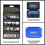 KEEP IT SIMPLE, SETUP (KISS)™ -menetelmämme ja mittareidemme avulla voit tarkistaa kitarasi tärkeät alueet ja käyttää työkaluja oman säädön tekemiseen. Aloituspaketti sisältää mitat, jotka soveltuvat kaikille sähkökitaroille, akustisille kitaroille, klassisille kitaroille ja bassoille. Mukana on myös kaksi työkalusarjaa, joilla voidaan säätää useimpia kitaroita ja bassoja. Paketti ei sisällä satulaviiloja tai akustisen kitaran ääniaukon kaularaudan säätöavaimia.