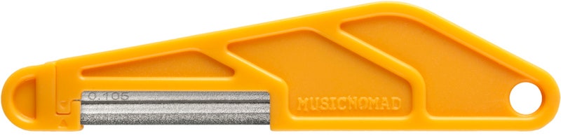 MusicNomadin patenttia odottavat satulatyökalut tarjoavat vallankumouksellisen timanttipinnoitteen ja pyöreän "kielen muotoisen" teräsuunnittelun, joka takaa sileät ja tarkat leikkaukset. Ne leikkaavat ja kiillottavat urat samanaikaisesti, eivätkä seilaa uralta kuten tavalliset hammasviilat. Teollinen, tasainen timanttipinnoite leikkaa ja kiillottaa kaikki yleisimmät satulamateriaalit, kuten nailon, luu, grafiitti ja TUSQ. Ne toimivat uskomattoman hyvin myös tallapaloissa. Lisäsimme ergonomisen kahvan täydelliseen mukavuuteen ja hallintaan leikkuun aikana, tai voit poistaa terän kahvasta vaihtoehtoisena työstövaihtoehtona. 16 eri kokoa valittavana, alkaen .010” aina .130” asti, ne toimivat erinomaisesti sähkö-, akustisille ja klassisille kitaroille sekä jopa 5-kielisille bassoille. Tämä on MusicNomadin laatua – nostamassa rimaa soittimen huollossa.