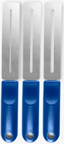 MusicNomadin patentin alaisella Tri-Beam Dual Notched ja Precision Straight Edge -viivaimella nauhojen ja otelaudan tasaisuuden diagnosointi ei ole koskaan ollut helpompaa. Ainutlaatuinen kolmiorakenne sisältää kaksi loveettua suoraviivainta, jotka on suunniteltu kattamaan laajempi valikoima mensuurimittoja: 24.625"–25" ja 25.34"–25.625", jotta voit mitata otelaudan tasaisuuden ja kaulan kaarevuuden. Kääntämällä viivaimen kolmannelle sivulle voit käyttää 17.6" (44.7 cm) "lovetonta" suoraviivainta tarkistaaksesi nauhojen tasaisuuden. Korkealaatuisen alumiinin ja huipputarkan valmistustekniikan ansiosta viivain säilyttää suoruutensa koko pituudeltaan sekä sisältää erittäin kiillotetut, sileät ja tasaiset reunat. Mukana on myös kätevä ripustusreikä. Tämä on MusicNomad-laatua – nostamassa rimaa soitinhuollossa.