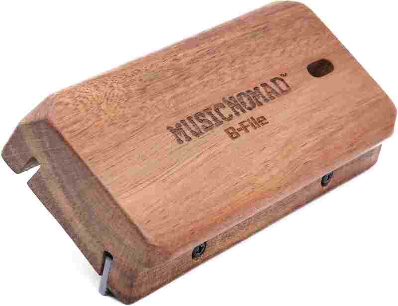 Mitä jos voisit viistää nauhanpäät nopeasti ja tarkasti? Nauhanpäiden viilaaminen tasaisella kulmalla ja viimeistelyllä ei ole koskaan ollut helpompaa kuin MusicNomadin B-File-viilalla. Täydellisesti suunnitellut 23° ja 3° viilauskulmat takaavat erinomaisen lopputuloksen. Korkealaatuinen, kestävä akaasiapuinen ergonominen kahva on muotoiltu kaarevalla alapinnalla ja on riittävän leveä asettumaan tasaisesti koko otelaudan läpi, mikä takaa poikkeuksellisen vakauden viilatessa. Täysin säädettävä ja vaihdettava korkeahiiliteräksinen viila sisältää sekä karkean kaksoisleikkuupinnan että hienon yksittäisleikkuupinnan, joiden avulla voit mukauttaa työkalun tarpeisiisi. Innovatiivinen suunnittelumme sisältää syvemmät viilaurat, jotta viila ei osu kitaran runkoon. Tämä on MusicNomad-laatua – vieden nauhojen huollon uudelle tasolle.