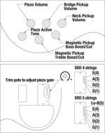 • Ibanez 2-band EQ w/Piezo active tone control.