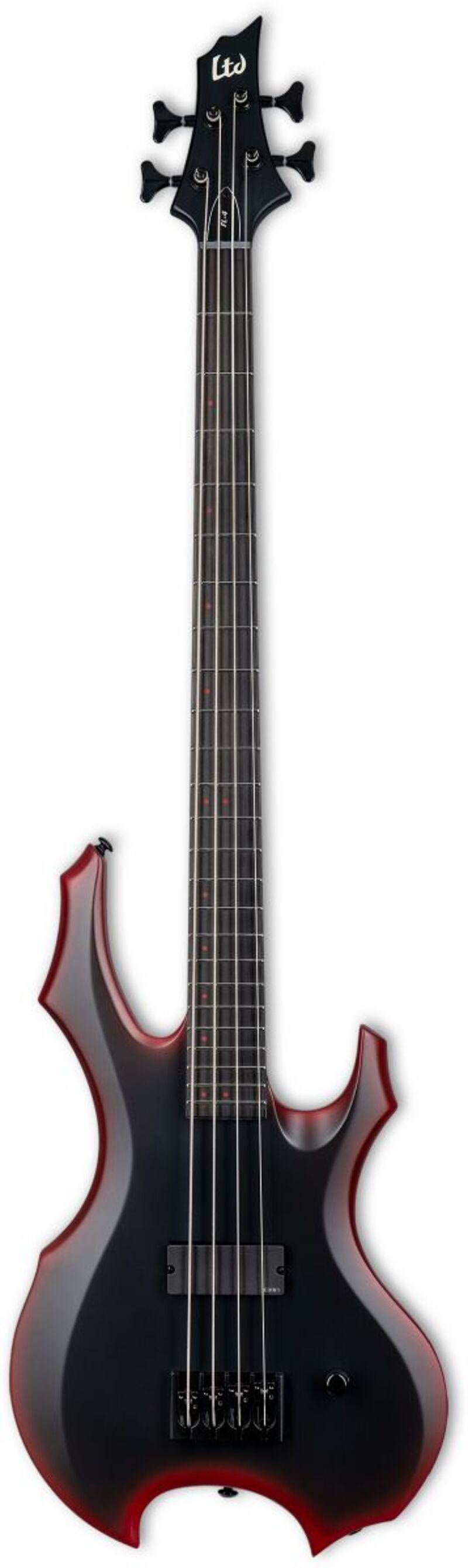 LTD FL-4 Black Red Burst Satin on suunniteltu yhdessä modernin metallin arvostetun basistin Fred Leclercqin kanssa. Neck-thru -rakenne, alder-runko ja viisilaminoitu maple/purpleheart -kaula luovat tarkan vasteen, pitkän sustainin ja vahvan keskialueen, joka toimii raskaissa vireissä. Koristeellisen Black Red Burst Satin -viimeistelyn ja aggressiivisen rungon muotoilun ansiosta basso erottuu sekä lavalla että studiossa.