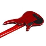 The top of the body has a slight contour for playing comfort. The bass features black hardware and luminescent side dots for visibility in low light. The finish is Brown Topaz Burst with low gloss.