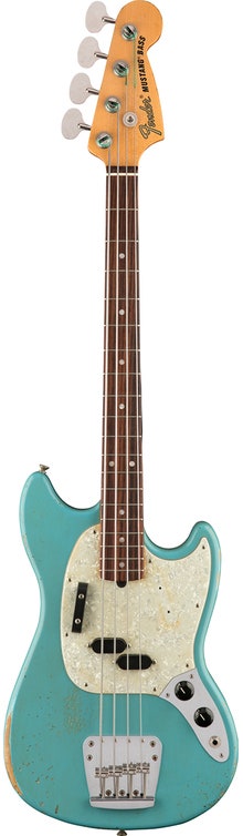 Fender JMJ Road Worn Mustang Bass RW Daphne Blue tarjoaa vintage-henkisen soinnin, kompaktin 30” skaalan ja...
