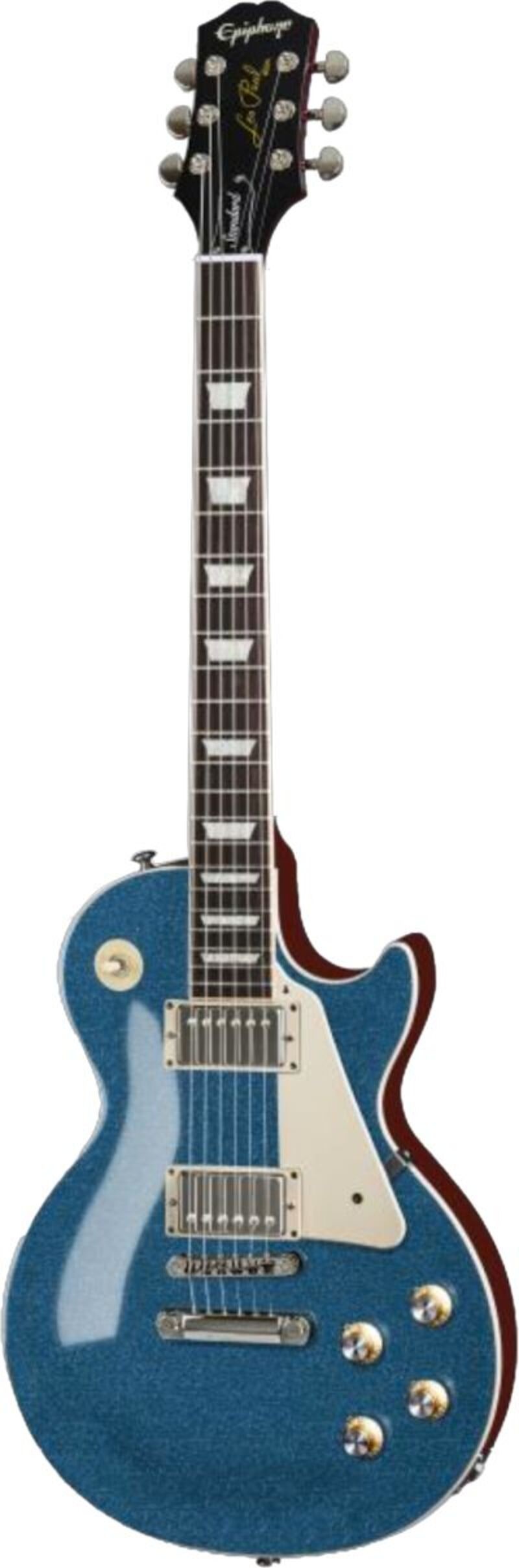 The Epiphone Exclusive Les Paul Standard 60s Brunswick Blue Sparkle is a guitar from the "Inspired by Gibson" collection. It captures the sound and feel of the heyday of Les Paul guitars in the 60s. With its classic mahogany body with maple top, Grover tuners and powerful ProBucker humbuckers, this is a guitar built to deliver classic Les Paul sound.