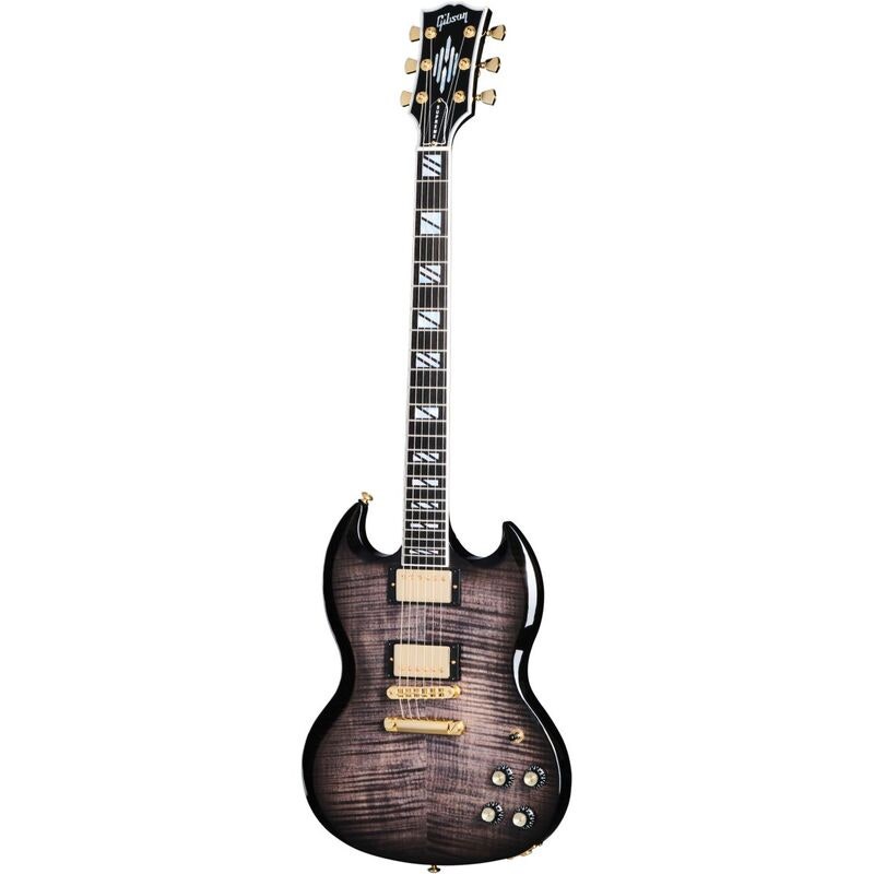 The SG Supreme is equipped with Burstbucker Pro pickups – a Burstbucker Pro in the neck and a Burstbucker Pro+ at the bridge. Each pickup has separate volume and tone controls, with push/pull functionality on the volume controls for coil-tapping. This allows switching between humbucker and single-coil tones for versatility.