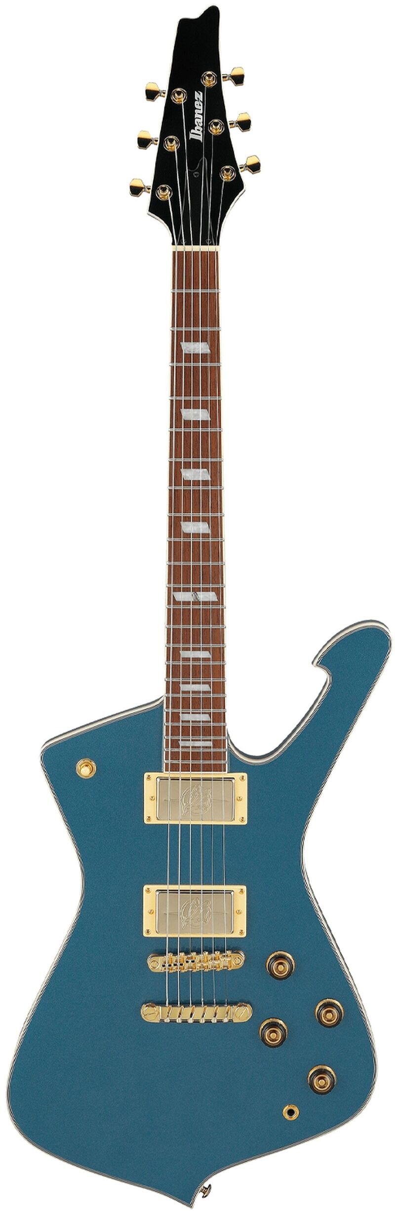 The Ibanez IC420 Antique Blue Metallic is a classic Ibanez model with an Okoume body, Gibraltar Preformer bridge and Super 80 (H) pickups.