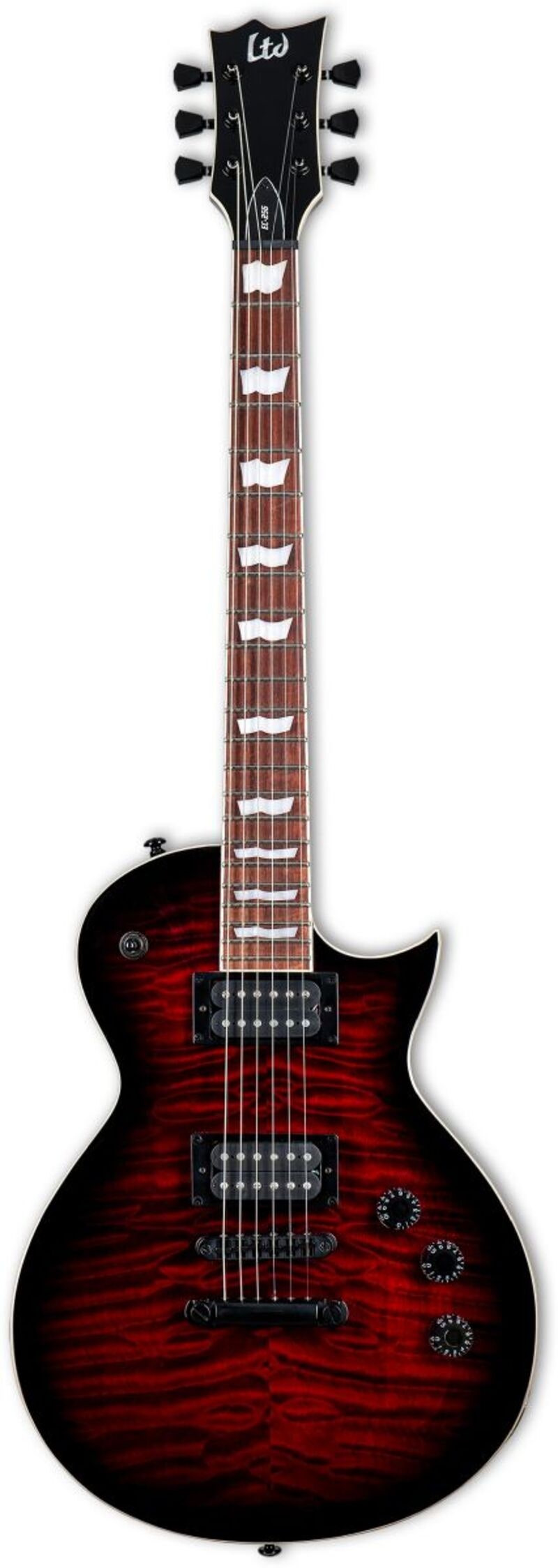 Tuotenumero 1083799LTD EC-256QM See Thru Black Cherry Sunburst on monipuolinen sähkökitara, joka yhdistää set-neck-rakenteen, näyttävän quilt maple -kannen ja ESP LH-150 -mikrofonien joustavan soundin hintaansa nähden poikkeuksellisen laadukkaaksi kokonaisuudeksi.