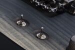 The guitar features a carved top, Ultra Access neck-thru construction and a roasted maple/purpleheart neck reinforced with carbon rods. The ebony fingerboard includes offset and reverse Roman numeral inlays and Luminlay side markers. The Ultra Thin “U” neck profile measures 19 mm at the 1st fret and 20 mm at the 12th fret. The scale length is 25.5” (648 mm) and the fingerboard has a 12”–16” compound radius.