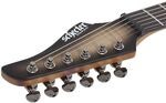 The electronics consist of two Lundgren M6 humbuckers. The controls include volume, tone with push-pull functionality and a three-way pickup selector. The Hipshot Ibby HM bridge provides stable performance, and the instrument is fitted with Schecter Locking tuners.