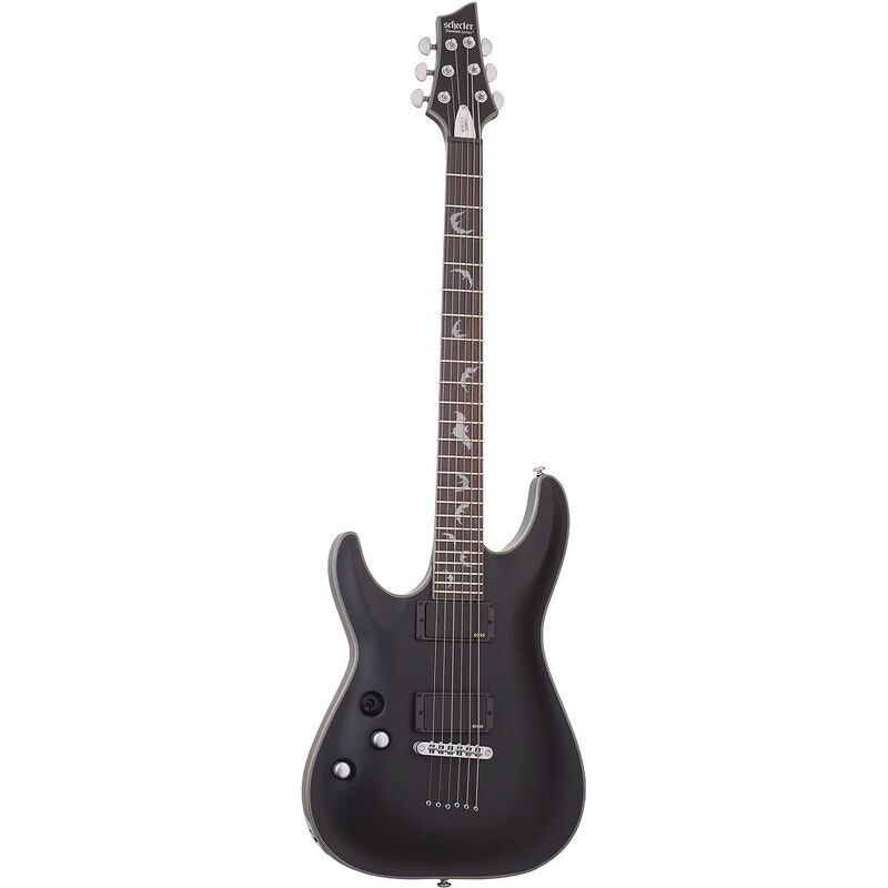 The Schecter Damien Platinum-6 LH Satin Black is a left-handed electric guitar built for players who demand high output, stability and fast playability. Featuring a mahogany body, Thin “C” neck profile, 24 X-Jumbo frets and active EMG pickups, the instrument is designed for modern metal and hard rock. The Ultra Access set-neck construction provides smooth and unobstructed reach to the upper frets.