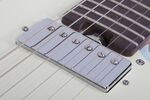 The tuning machines are Schecter Locking tuners for quick string changes and stable tuning. Brass circle inlays provide a distinctive visual character, while chrome hardware complements the matte Atomic Frost finish.