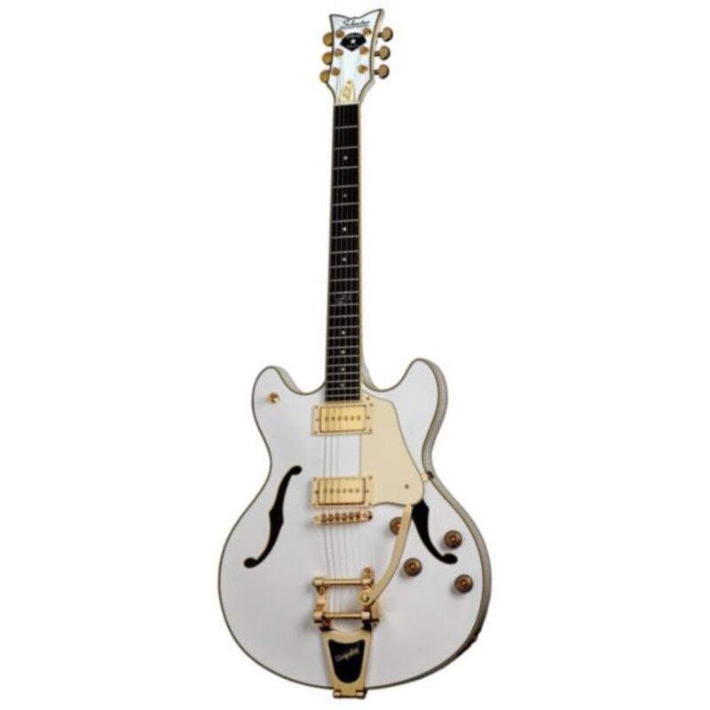The Schecter Robin Zander Corsair in Gloss White is a semi-hollow electric guitar that blends classic style with modern performance and expressive P-90 tone. Based on the Corsair platform, this signature-influenced model features elegant upgrades and a Bigsby B70 vibrato for dynamic phrasing and vintage-inspired feel.