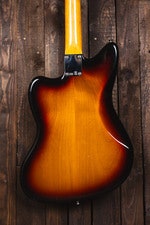 Tuotenumero 1094684Used electric guitar, alder body, maple neck with rosewood fingerboard, Hot Single-Coil Jazzmaster pickups, Adjusto-Matic bridge, floating tremolo, 3TSB finish, classic design with modern enhancements, 6-month warranty.