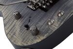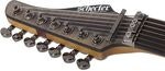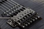 The guitar has an arched top, Ultra Access neck-thru design and a roasted maple/purpleheart multi-ply neck reinforced with carbon rods. The ebony fingerboard features offset/reverse Roman numeral inlays and Luminlay glow-in-the-dark side dots. The Ultra Thin “U” neck profile measures 19 mm at the first fret and 20 mm at the 12th fret. Scale length is 26.5” (673 mm) with a 12”–16” compound radius. The guitar includes 24 X-Jumbo stainless-steel frets and a Floyd Rose 1500 Series nut.