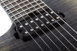 The guitar has a radius top, Ultra Access neck-thru design and a roasted maple/purpleheart multi-ply neck reinforced with carbon rods. The ebony fingerboard includes offset and reverse Roman numeral inlays as well as Luminlay glow-in-the-dark side dots. The Ultra Thin “U” neck profile measures 19 mm at the 1st fret and 20 mm at the 12th fret. Scale length is 26.5” (673 mm) with a 12”–16” compound radius. The guitar features 24 X-Jumbo stainless-steel frets and a Graph Tech XL Black Tusq nut.