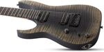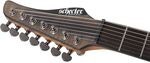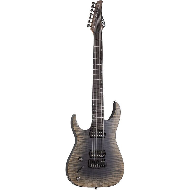 The electronic setup consists of two Lundgren M7 humbuckers. Controls include volume, tone with push-pull functionality and a three-way pickup selector. The guitar uses Schecter Locking tuners and a Hipshot Ibby HM bridge.