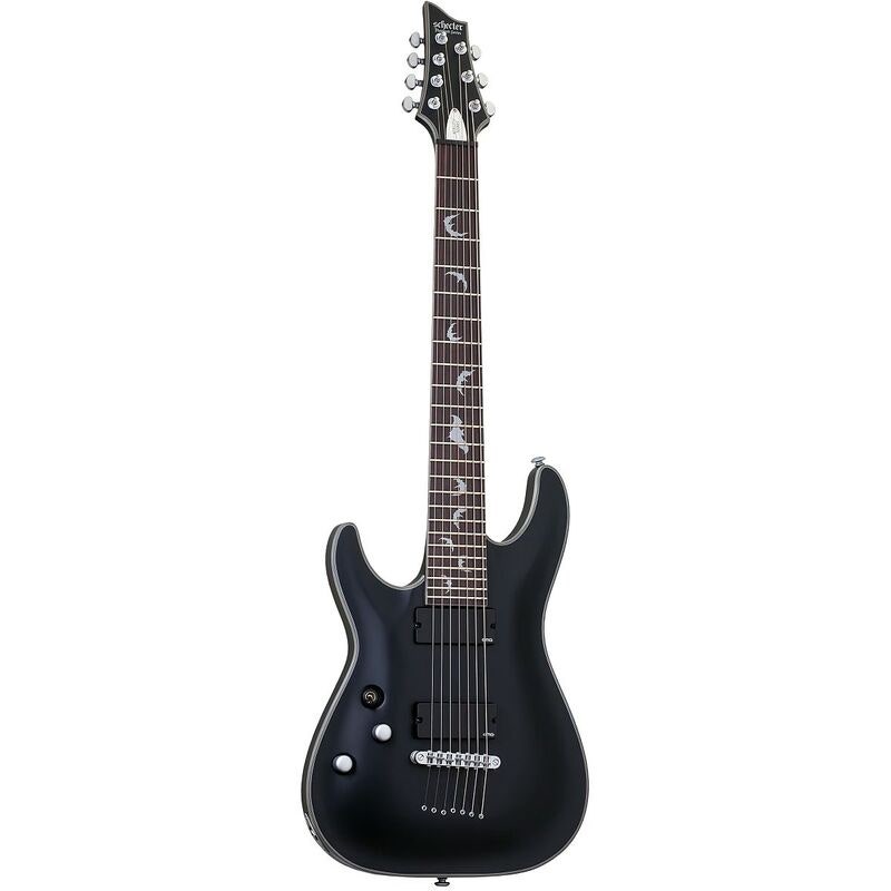 Schecter Damien Platinum-7 LH Satin Black – left-handed 7-string metal guitar with EMG pickups